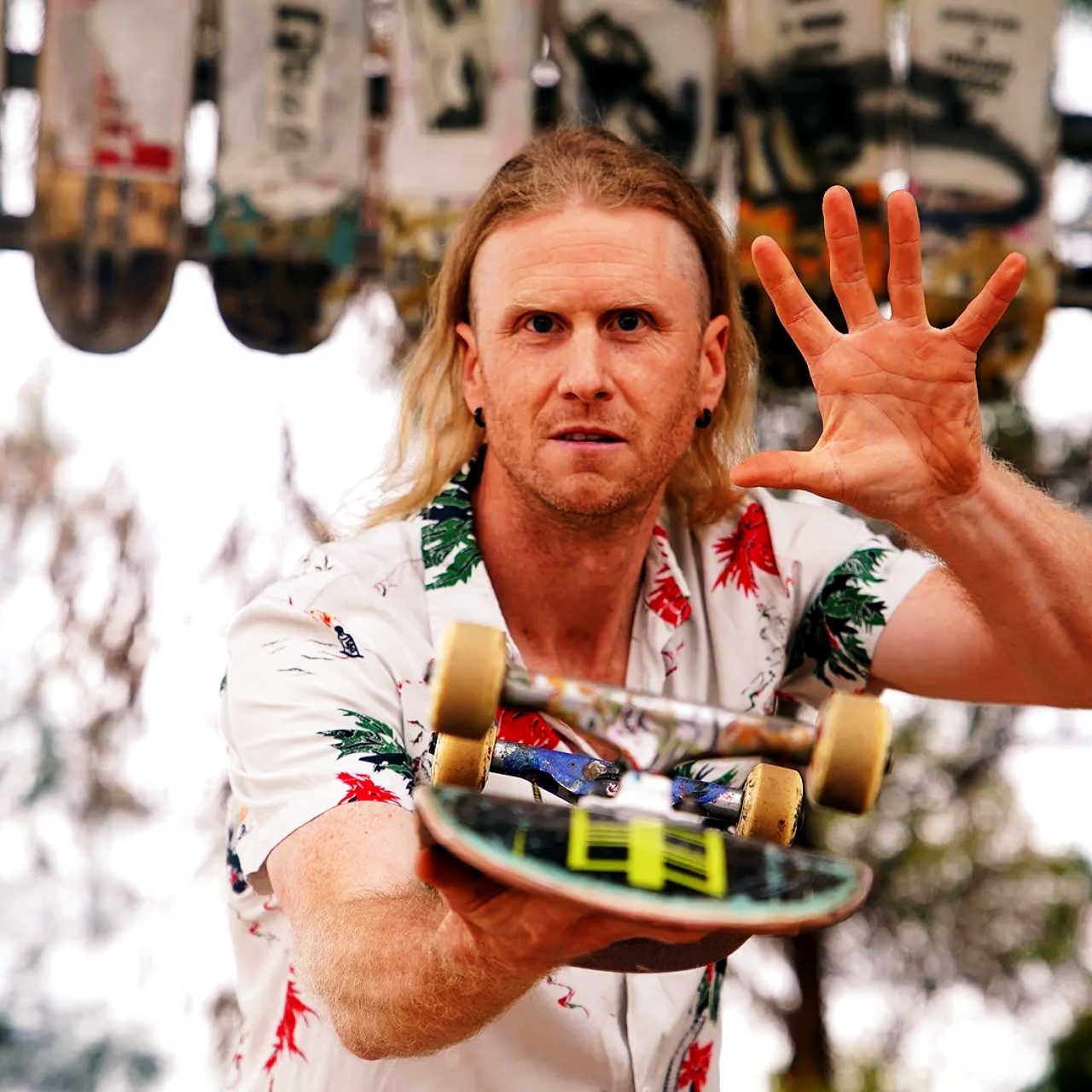 Before music entered the picture, Brett Ashby learned to speak through colour and motion. His visual work often starts in physical movement – using skateboards or surfboards as tools – letting gravity, speed, and balance decide the mark. I like that you can see the time and movement in it. I hear the same thinking in La Luna. This song goes where it needs to go.